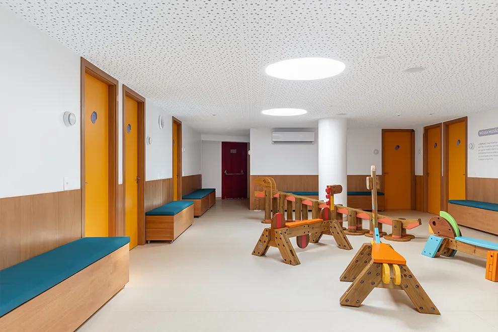 Cada espaço está cuidadosamente pensado para oferecer um ambiente acolhedor e lúdico às crianças e suas famílias.